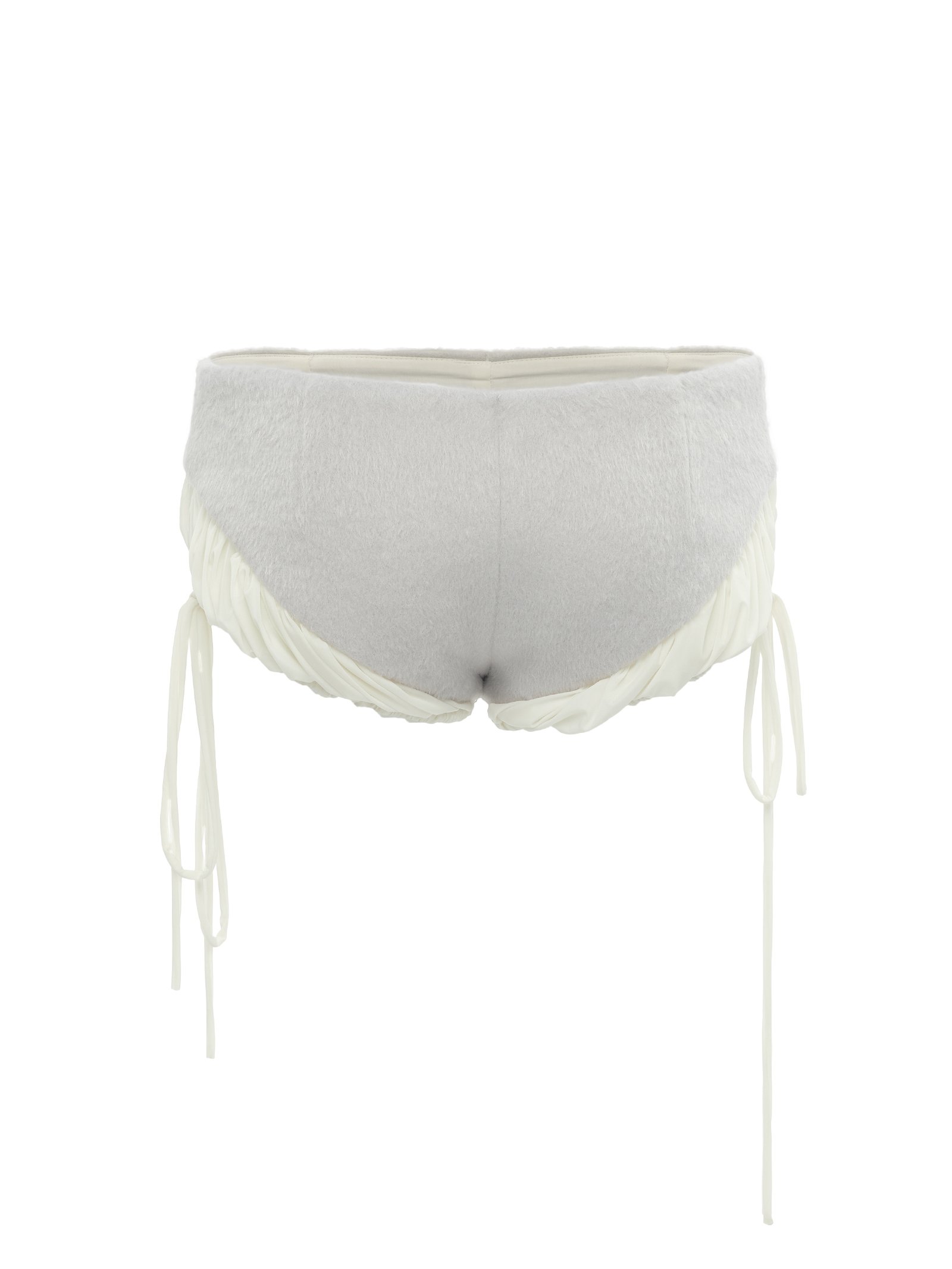 ” Rabbit-fur fleece short: On a base of premium cream fleece, the rabbit-fur trim offers an immediate sense of softness and luxury upon touch. The design’s key detail lies in the cuffs, featuring a smart drawstring hem. This allows you to cinch them tight to create a “”pumpkin”” silhouette—a puffed, voluminous shape that is both warm and creates an impressive, high-fashion profile.”